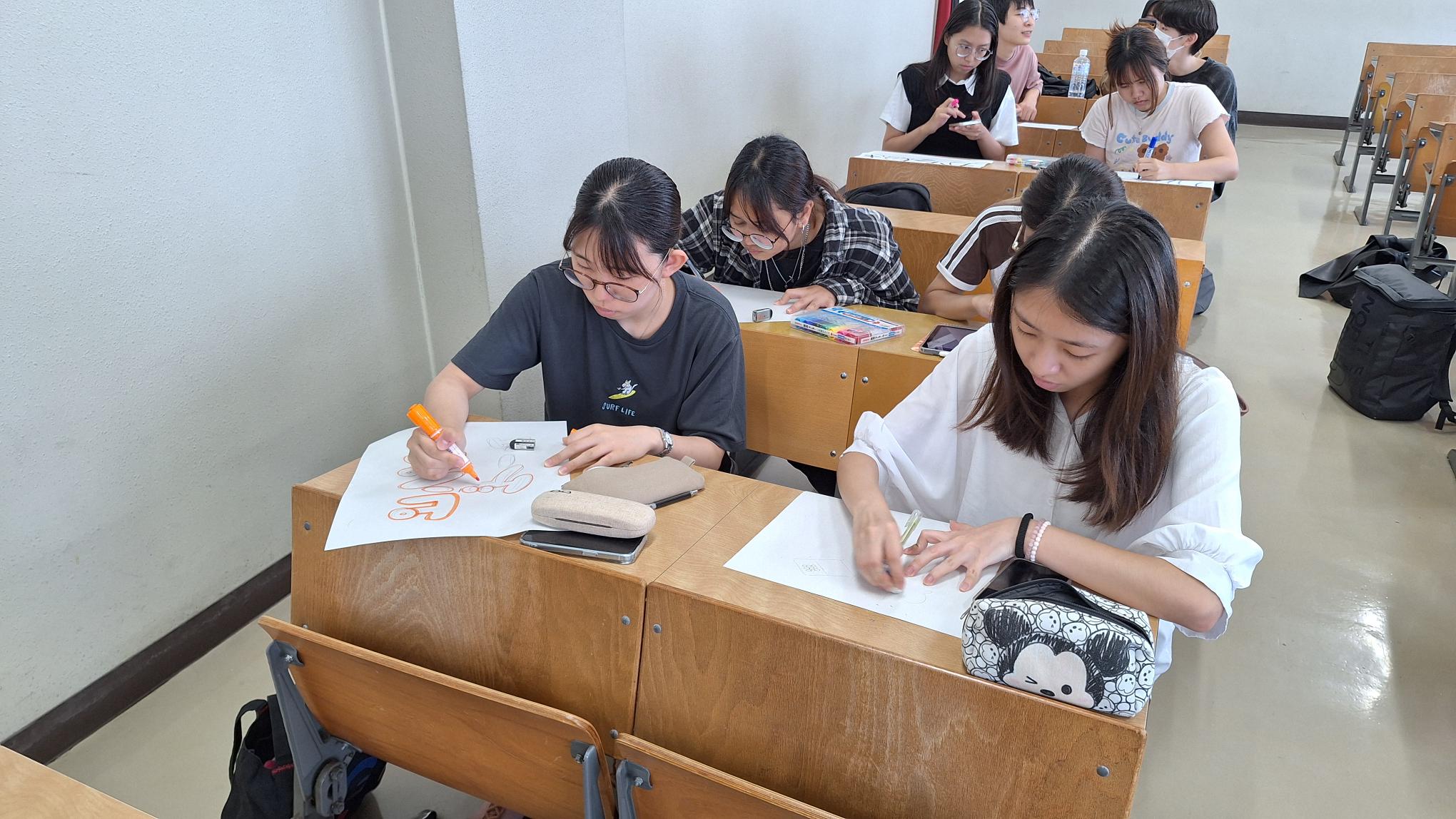 In the class held on Wednesday, July 9, students worked in groups to finalize activities for children attending the festival. They prepared a variety of fun games such as stencil cutting, can knockdown, ping-pong toss, and watermelon splitting. As prizes, snacks from around the world will be handed out, and creative ideas have been incorporated to encourage natural interaction between local children and international students.