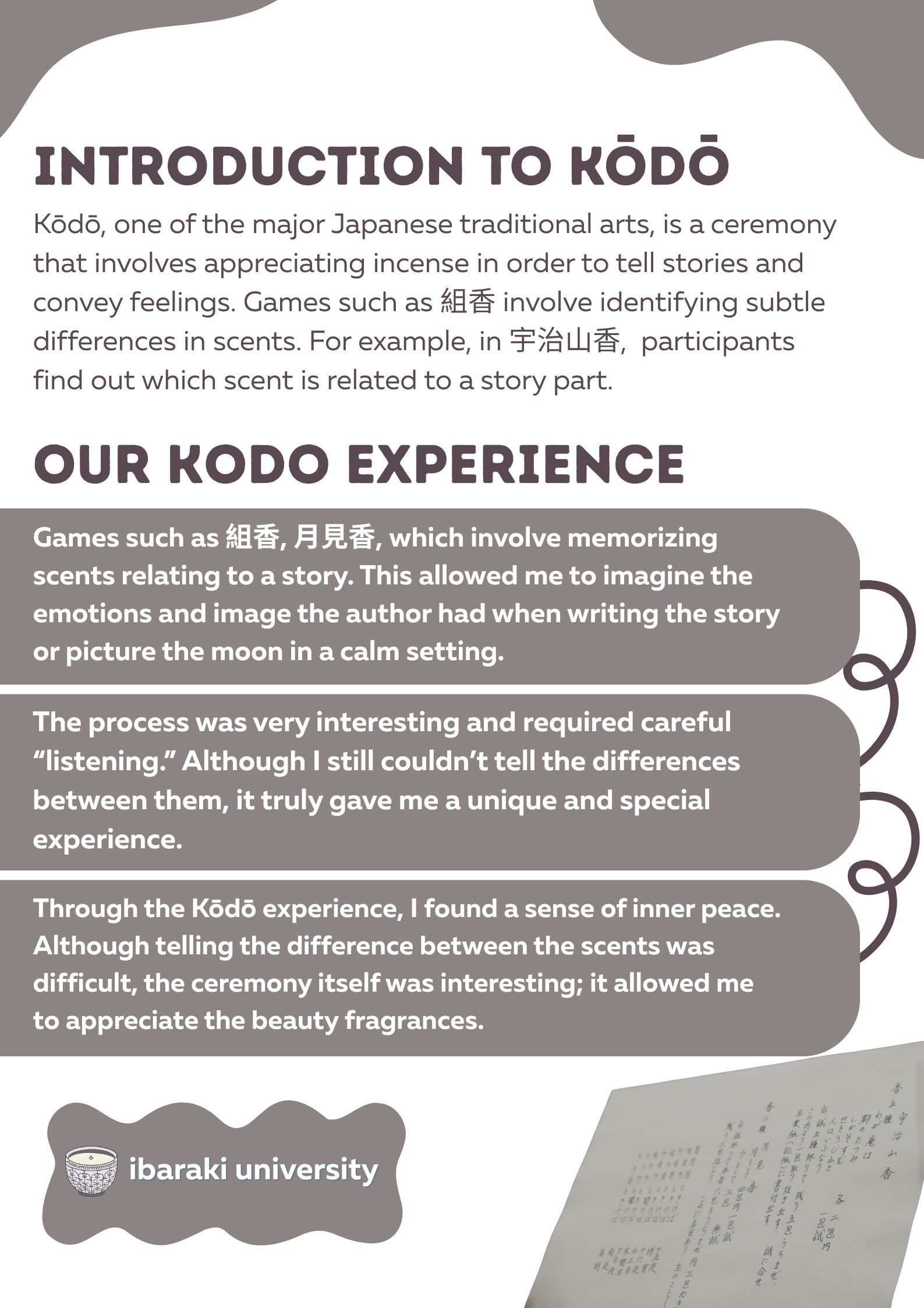 The experience offered students a chance to discover the Japanese aesthetic of appreciating subtle scents while enjoying a tranquil and mindful moment together.