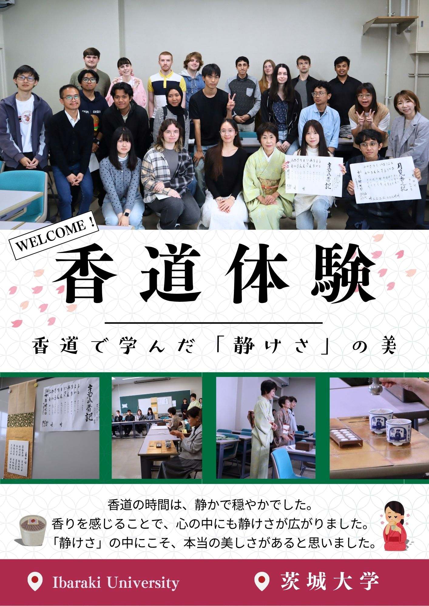 On Friday, October 17, 2025, as part of the Japanese Field Studies B program, 22 international exchange students participated in a Kōdō (Japanese incense ceremony) experience.