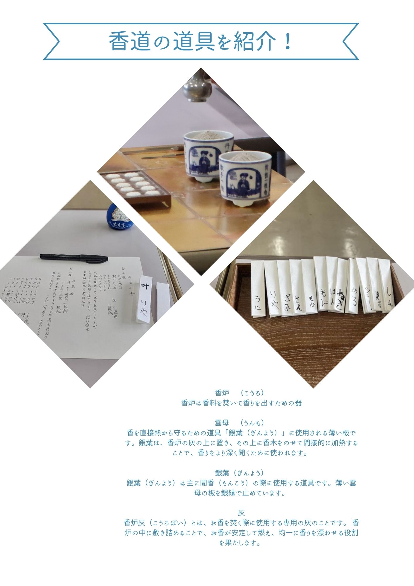 Students shared their impressions, saying, “I was fascinated by the depth of the world of incense,” “The calm atmosphere allowed me to reflect on myself,” and “It was my first time trying Kōdō, but I found it very relaxing.”