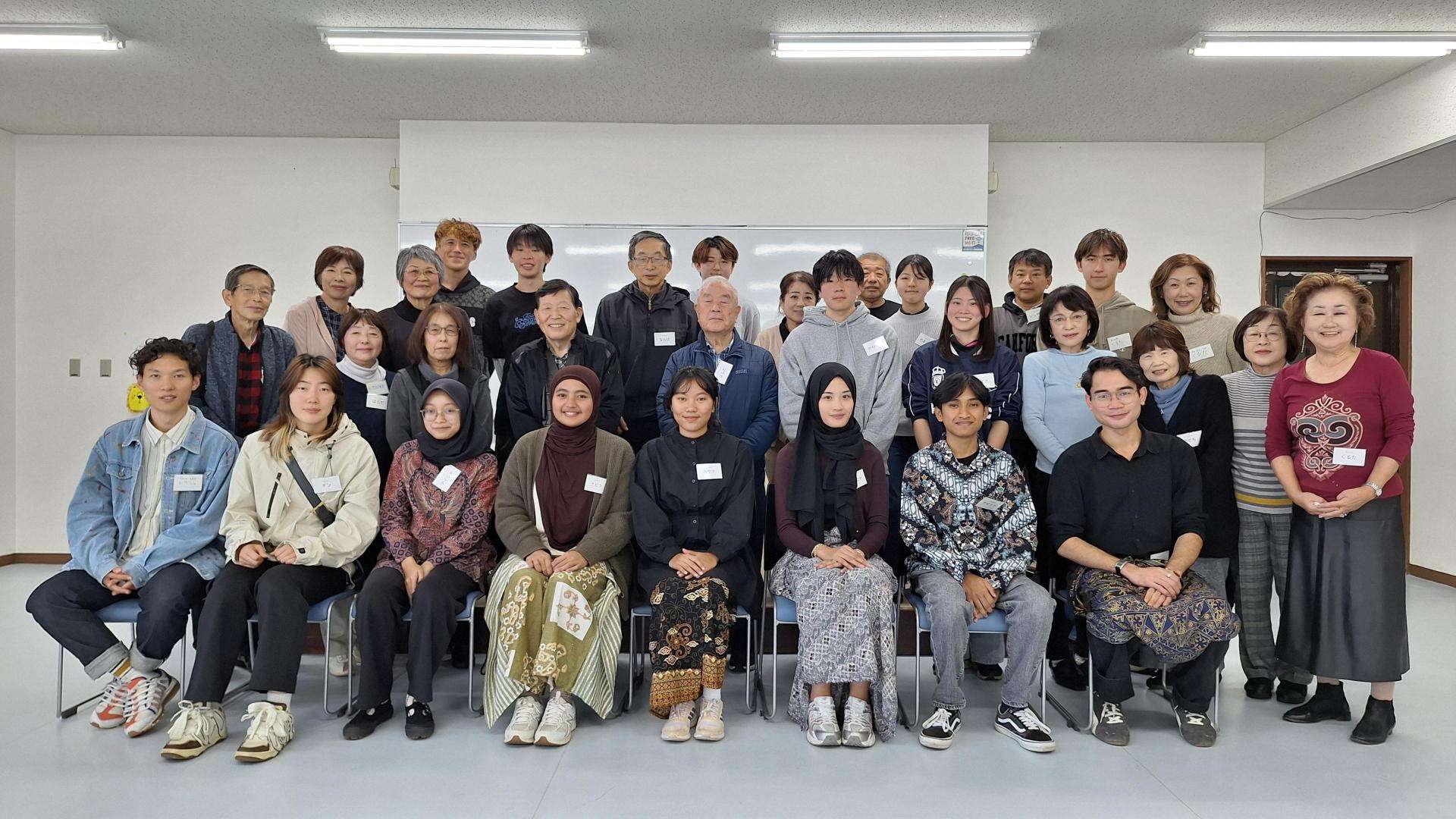 The venue welcomed six students from Indonesia and two students from China, all studying at Ibaraki University’s Ami Campus, along with five Japanese students who supported the exchange. In addition, 21 members of the Ami Town International Exchange Association joined, making it a lively gathering of more than 30 participants.