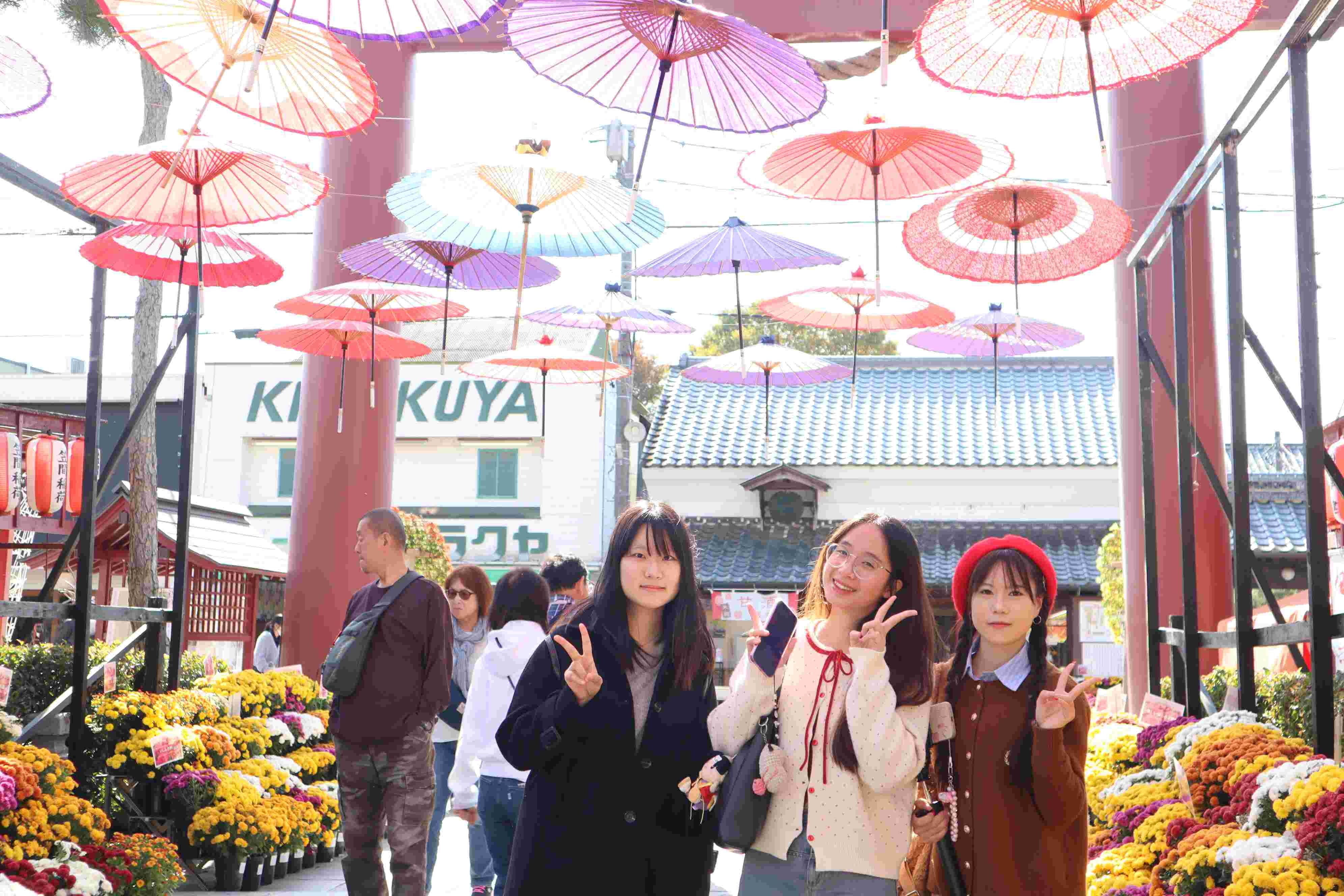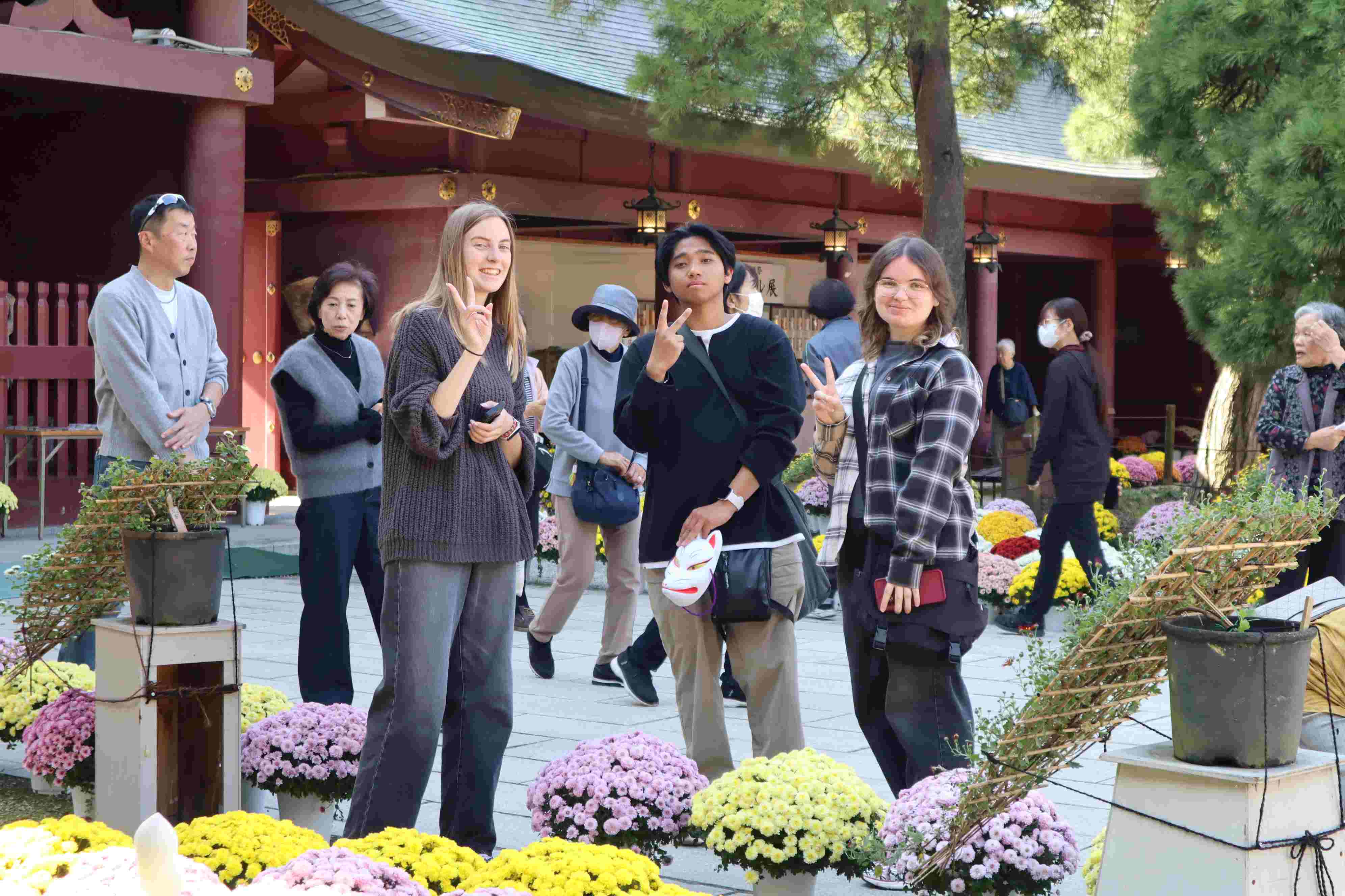 They enjoyed the annual Chrysanthemum Festival, viewing the vibrant floral displays, strolling through the shrine grounds, and trying local street foods. Many also stopped by nearby shops and spent their time freely at their own pace.