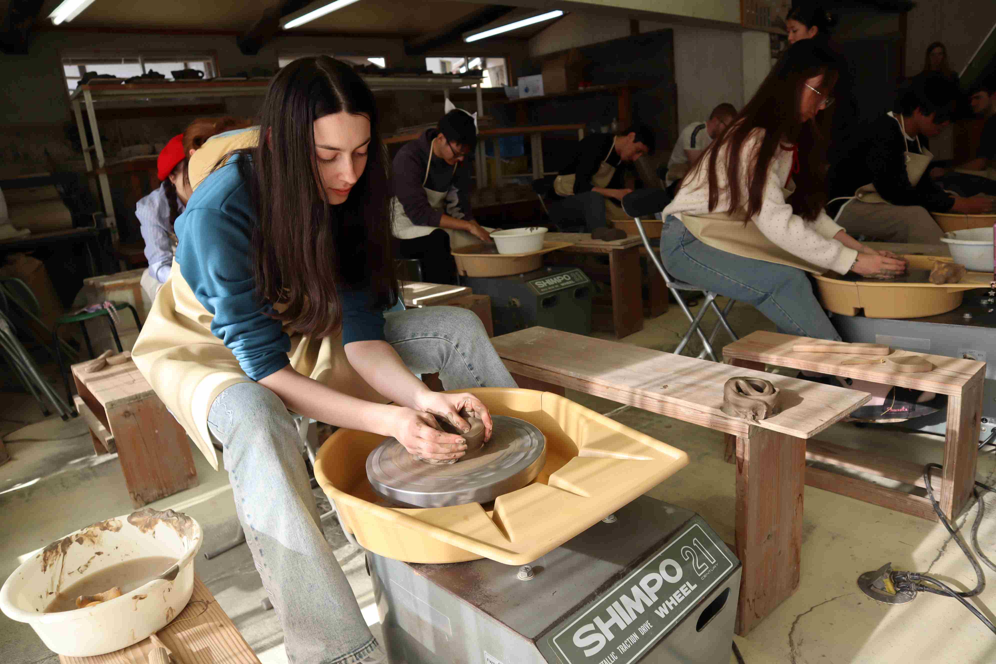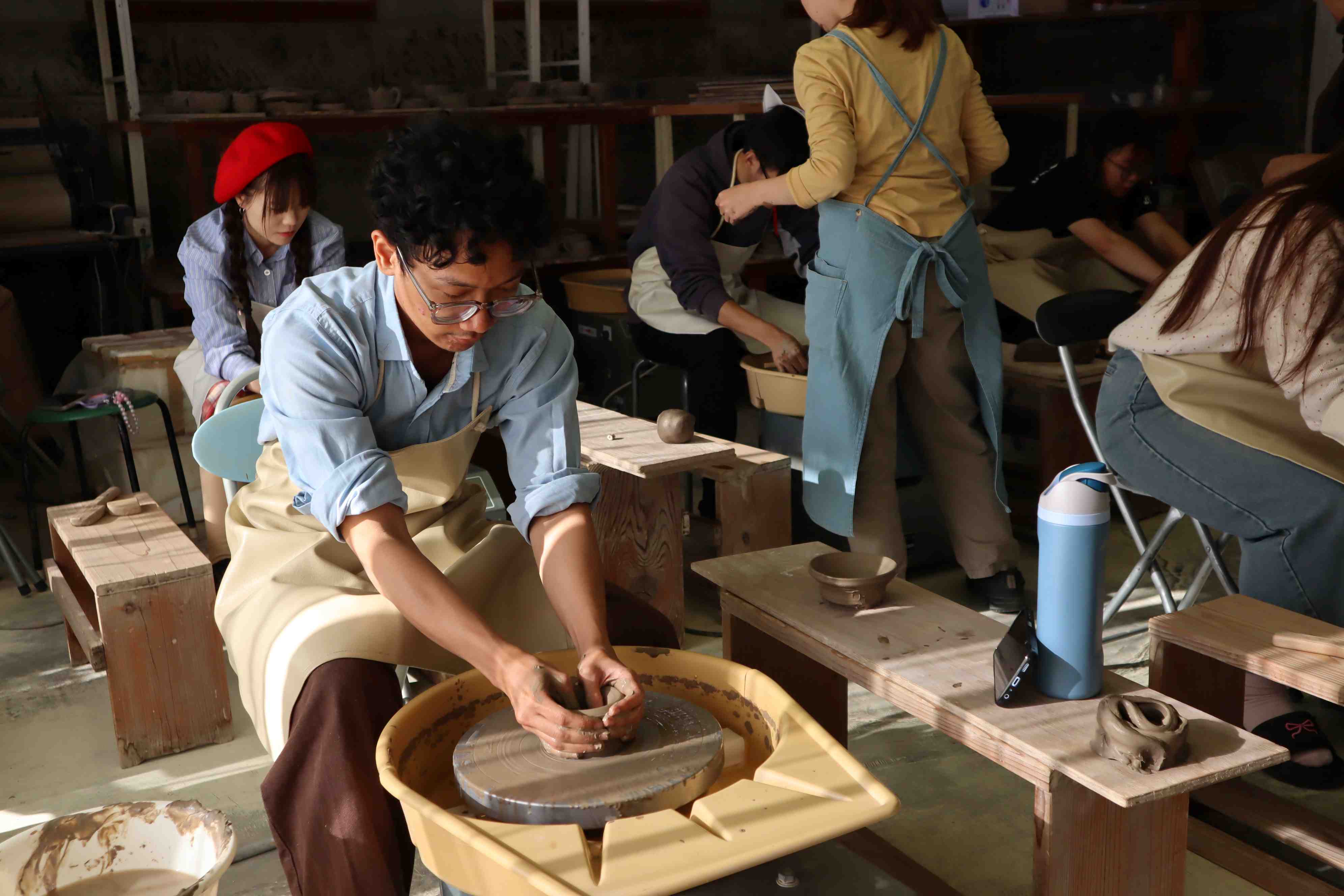 In the afternoon, the group visited Otsu Kouyou, where students took part in a hands-on pottery workshop. With guidance from the studio staff, they used the potter’s wheel to create their own unique pieces. For many, it was their first time working with clay, and their focused expressions showed how engaging the experience was.