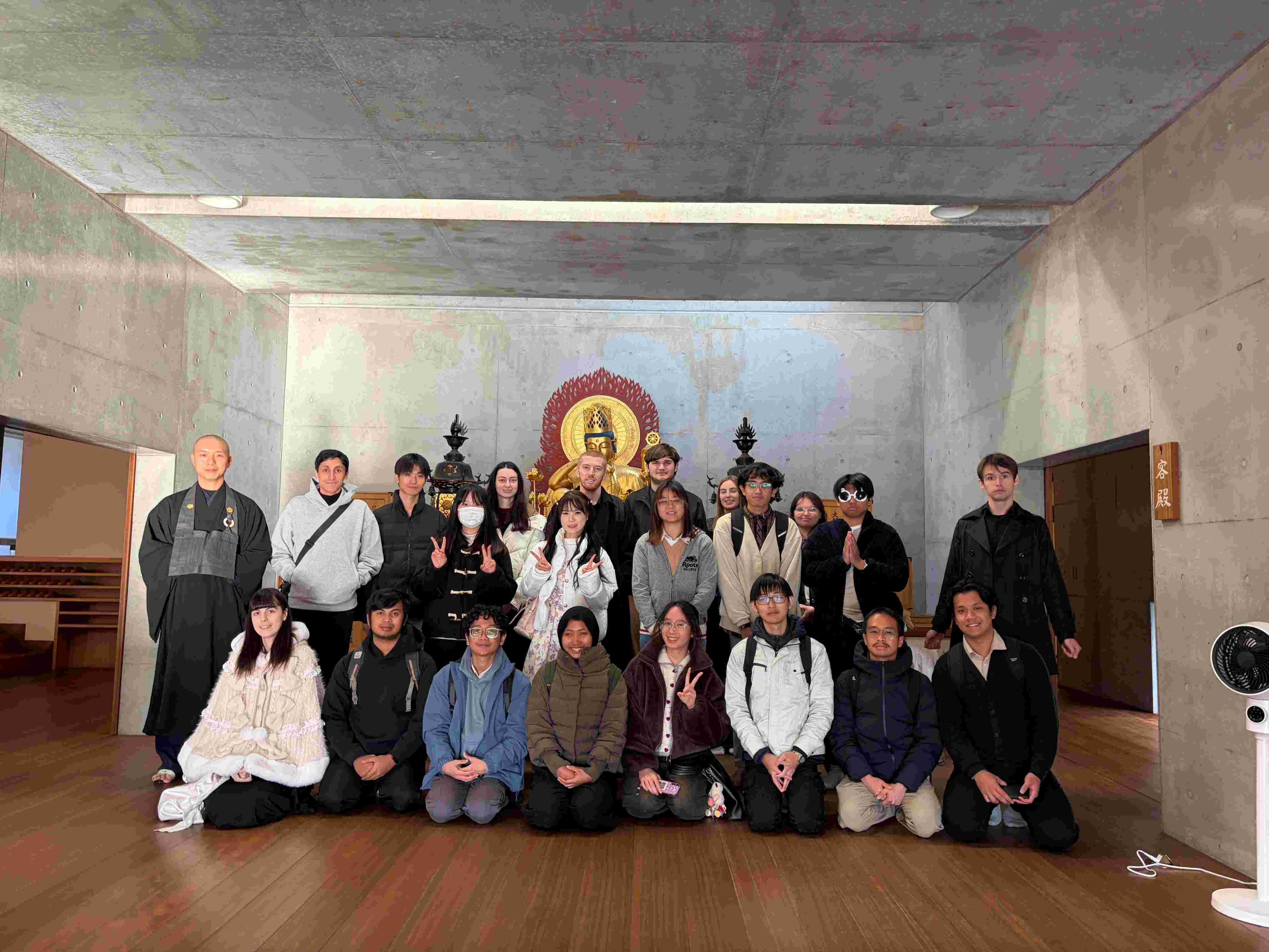 On December 19 (Fri.), twenty two international students participated in a zazen experience as part of the Japan Experience B class. In the pre-departure training, the students studied the history and basic knowledge of zazen, and on an actual day, they experienced Japanese culture through the zazen experience at Gionji Temple. In the post-experience reflection, many participants commented that the time spent quietly facing themselves in silence not only deepened their understanding of Japanese culture, but also provided an opportunity for self-reflection and personal insight.