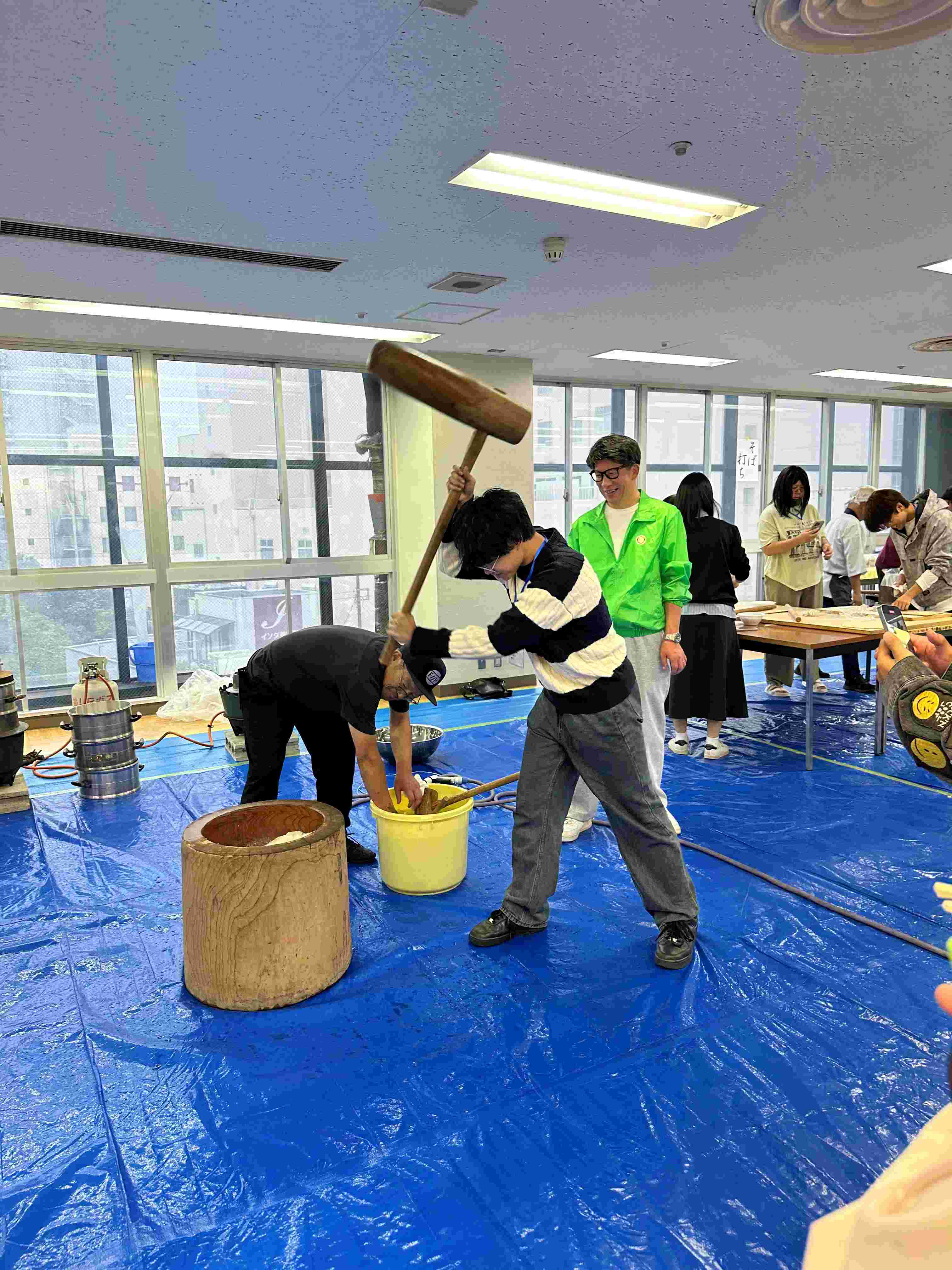 この「心の交流会」は今年で36回目を迎えました。茨城大学からは、留学生と日本人学生、約30名が心の交流会に参加し、そば打ち、お餅つき、たこ焼き作りの日本食を楽しむイベントから、書道や茶道体験といった伝統文化、さらにはeスポーツの体験などバラエティに富んだ体験をすることができました。