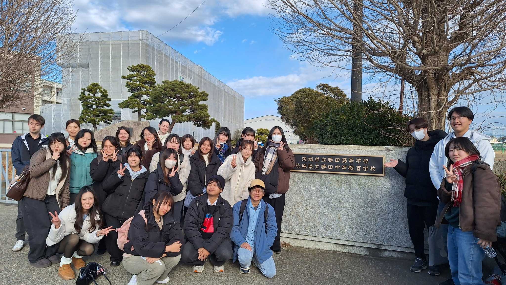 本プログラムでは、対面での交流や地域をフィールドにした学びを土台にしながら、「多様な背景をもつ子どもたちが安心して学べる学校とはどのような場か」という問いを軸に、複数回の授業交流を重ねてきました。12月3日には勝田中等教育学校に大学生が訪問し、身近な「校則」を題材として、文化の違いを尊重するためにどのような対応が望ましいかを話し合いました。翌12月4日には常総市を訪ね、外国にルーツをもつ住民が多い地域の現状に触れながら、企業の受け入れ現場や多文化コミュニティの姿を学ぶフィールドトリップを実施しました。そして、こうした共通体験を共有したうえで、その後計3回の授業交流を重ね、議論をしていきました。